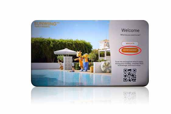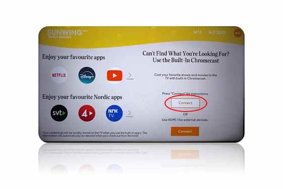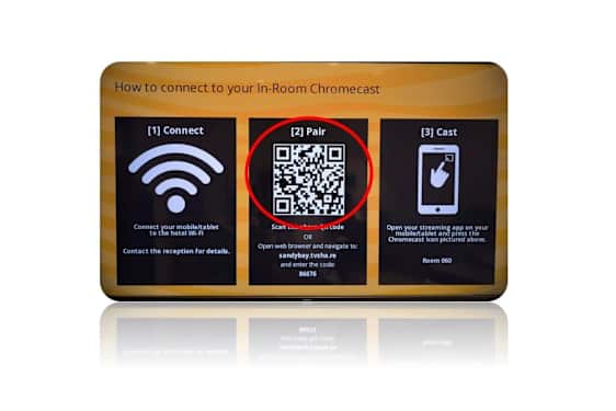 Connect your mobile phone to the hotel’s Wi-Fi and scan the QR code on the TV.