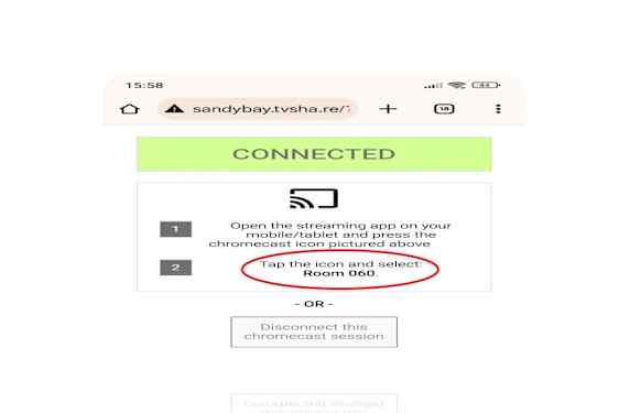Your room number should appear shortly. Click on the room number and you should see the same number displayed on the TV as on your phone/tablet.